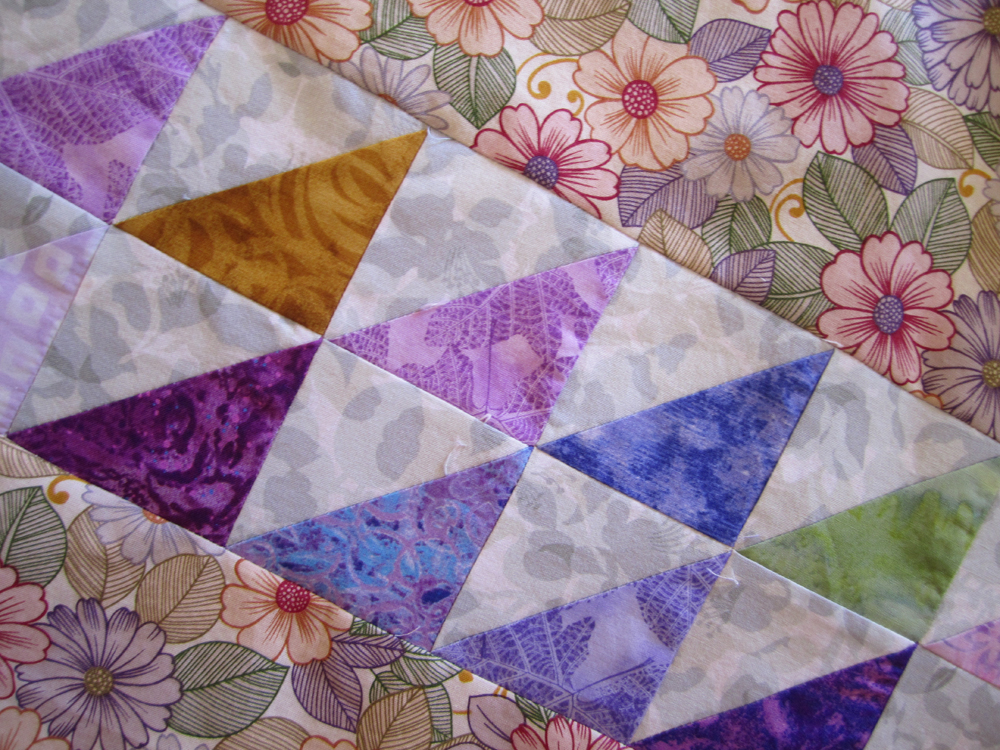 I have been working on two baby quilts using the Half-Square triangles I make at quilt shows.